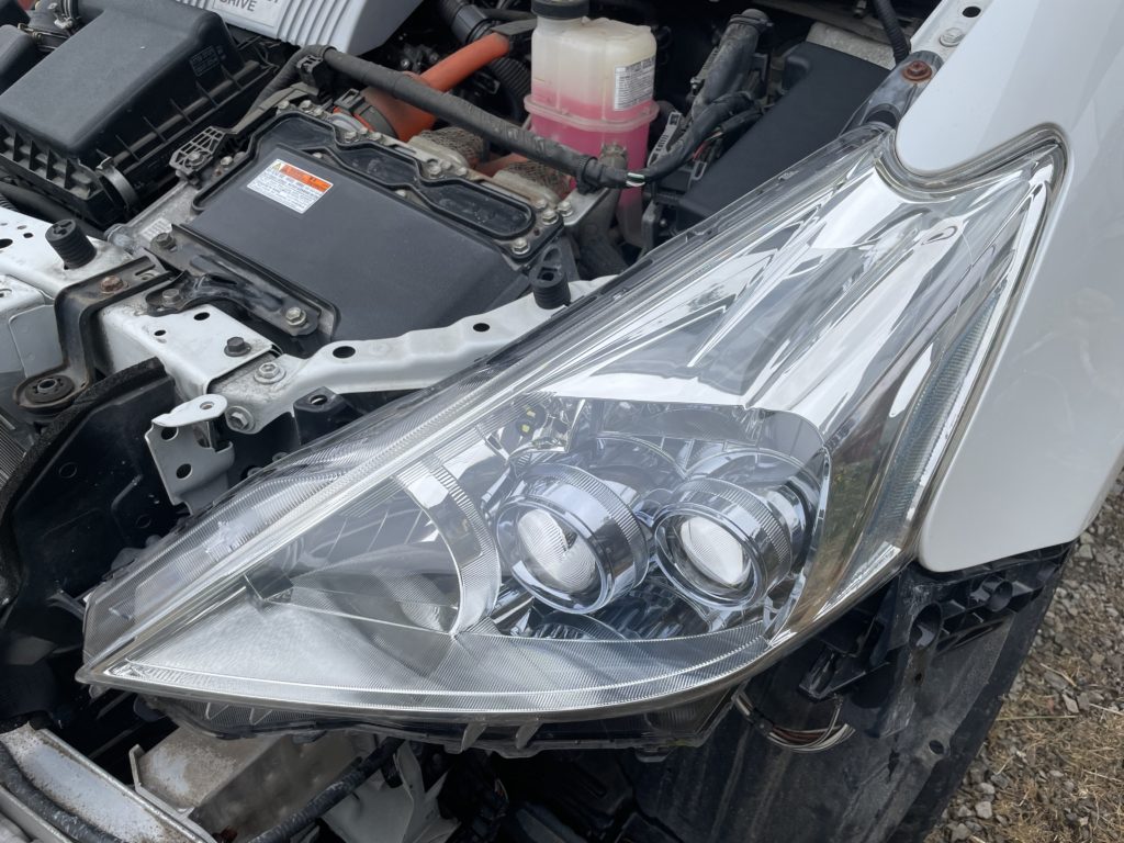 とりあえず旧の写真を撮り忘れたけど他の作業の時に写り込んでたので参考までに、ヘッドライトスチーマーでヘッドライト黄ばみを落とした時