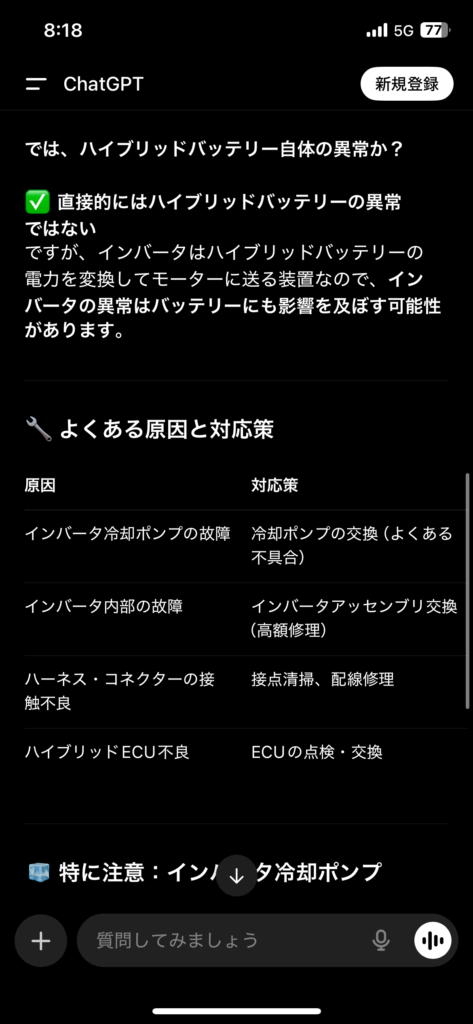 ここでようやく気づきました、頭の中の記憶を辿り確かにハイブリッドバッテリーの故障が大半だが、インバーターが壊れるパターンがあることに