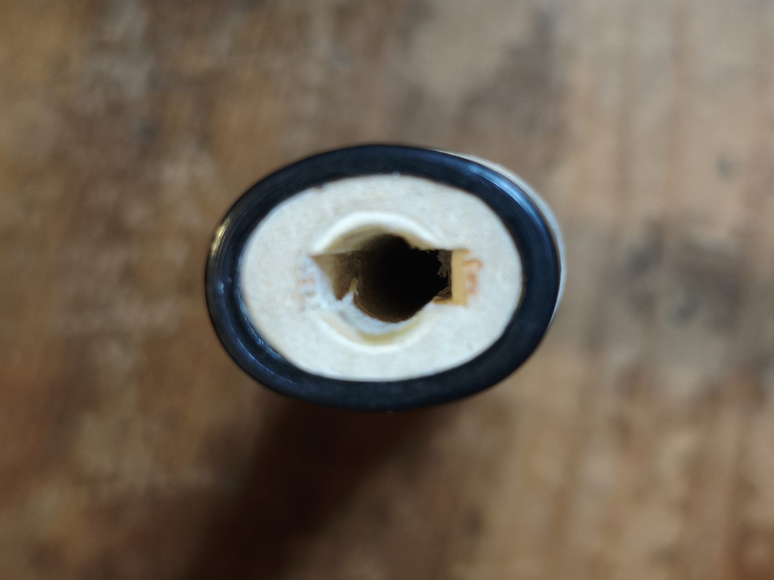 柄に包丁を突っ込んでエポキシ樹脂で固めました。エポキシ樹脂は人体に良くないのでこの上からロウソクで固める予定です。