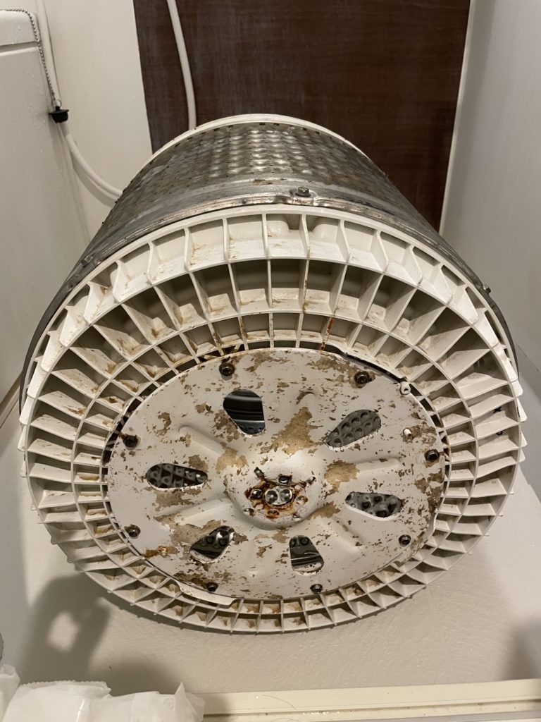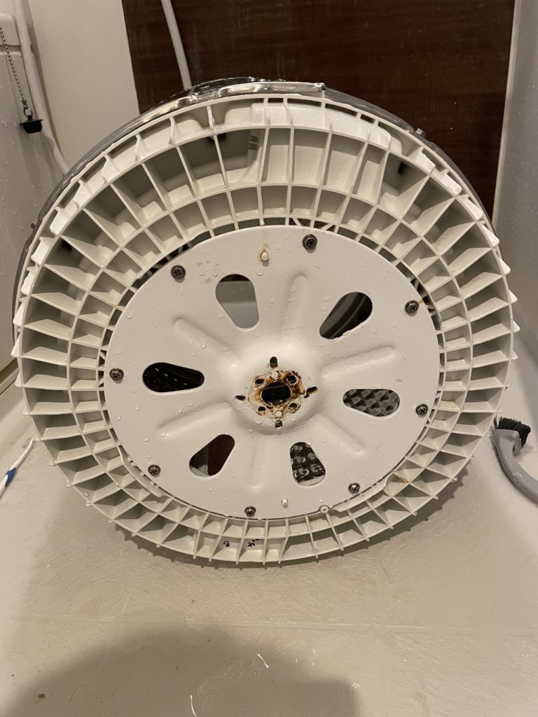 これまでドラムの底に付いている羽根(パルセーター)は何度か外したことがあったけどドラムを引っこ抜いての作業は初めてやりました。