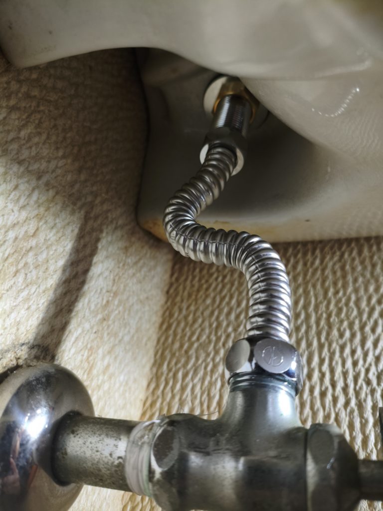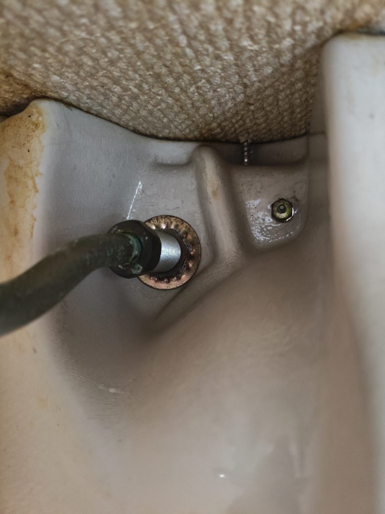 これでやりやすくなりました。このようにレンチをかけられます。止水栓がないので回せます。