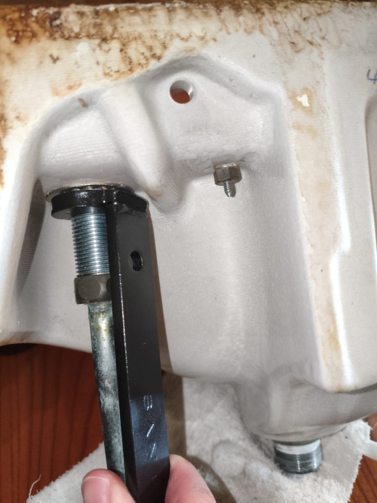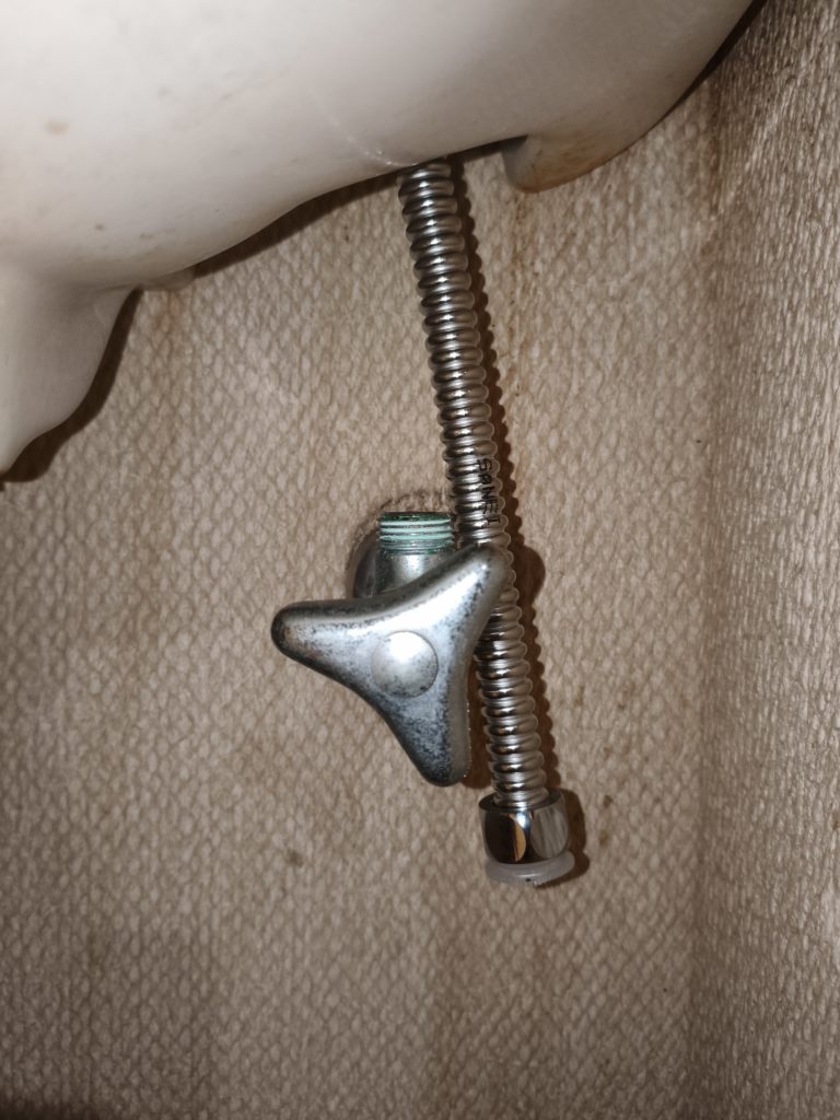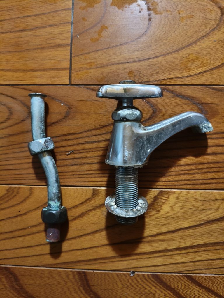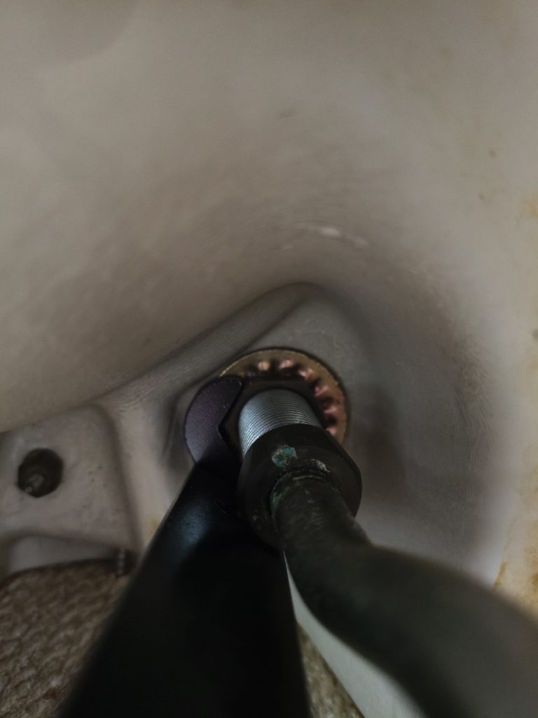 レンチがあれば外せると思ってましたが甘かった。ロックナットの周囲に1cmくらいのリブが立っていてレンチを回そうとすると干渉して回せない。回せる方に持ってくと今度は水栓の管が手元を邪魔して回せない。