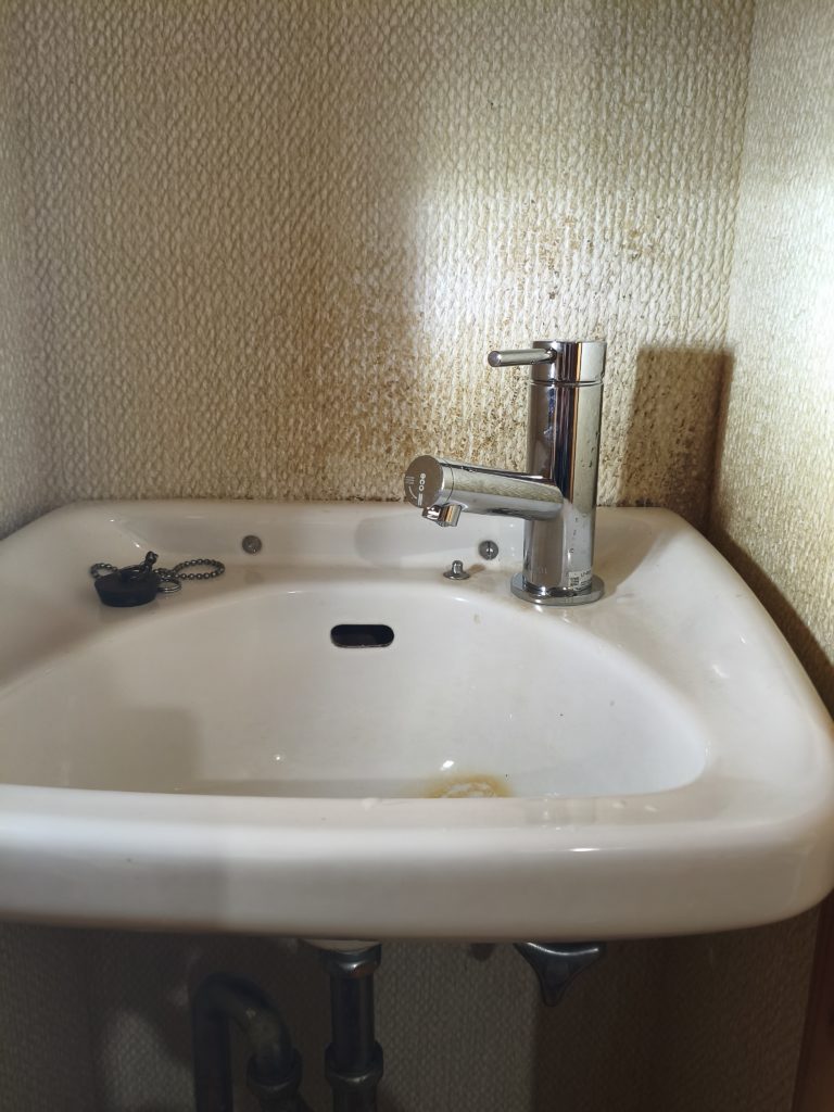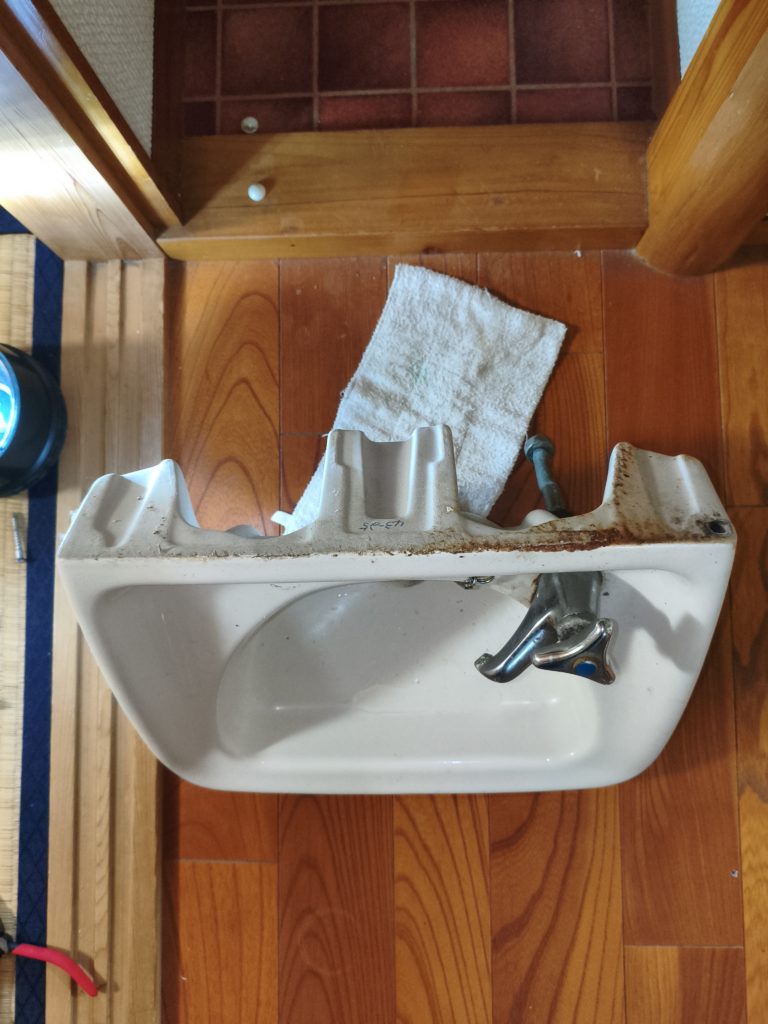 ってことで洗面台をゴロン、取り外しました。