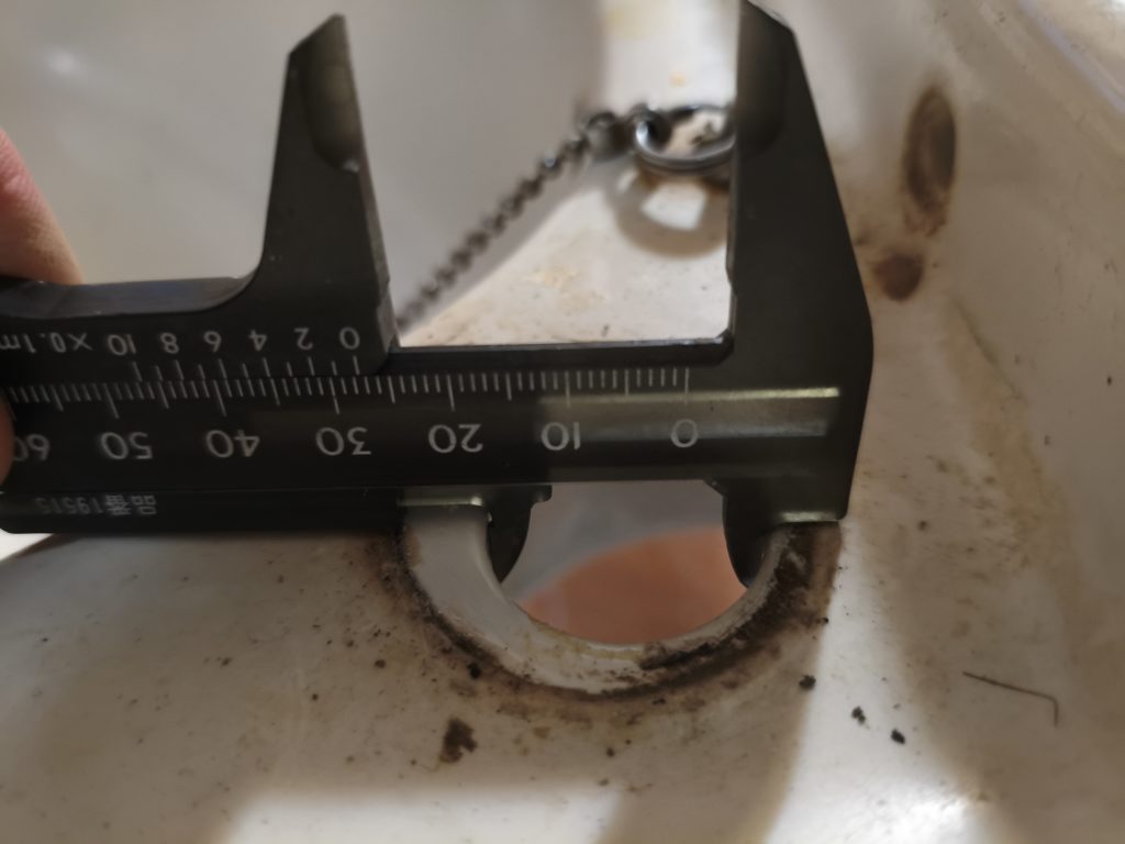 洗面台の厚みを入れても全長はほぼ同じだったということですね、ゴムパッキンでもなくフワフワしたマスキングみたいなやつで全長は1,2mm長い程度であったことが分かります。