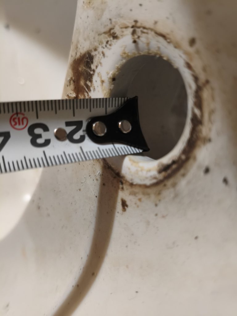 このL-5D結構古いため、TOTOのホームページの図面見ても手書きだし寸法振ってないしです。バカ穴Φ約27.5